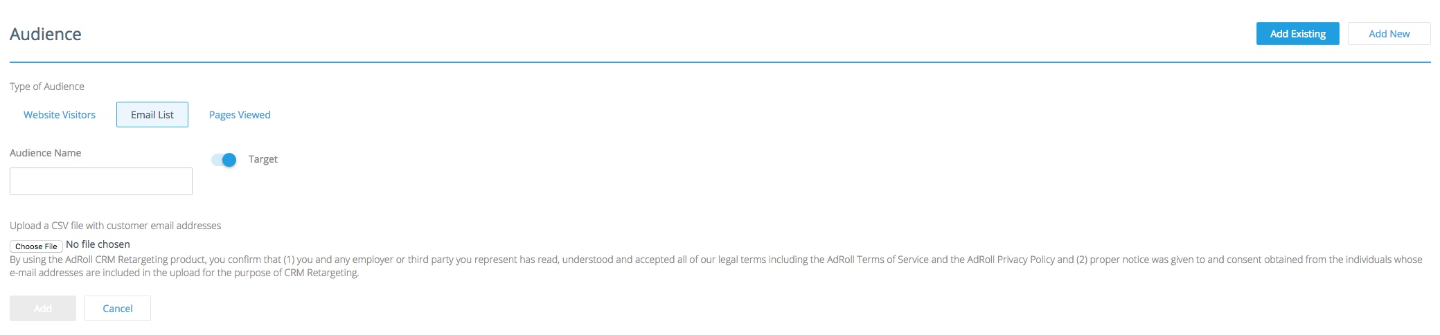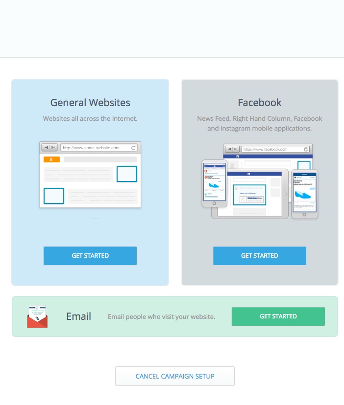 Step1. log in and select a campaign you wish to set up, either Email, Facebook or Website. Once in here you can then add in audiences and set your budget as shown below