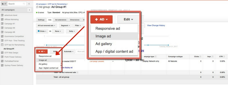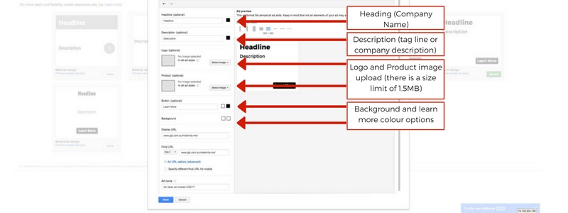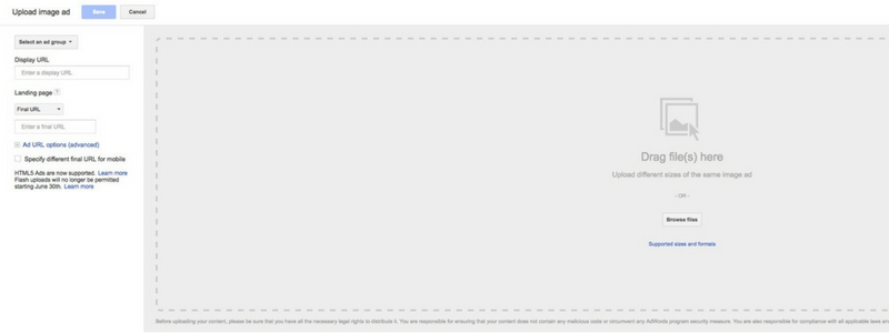 At this point you can either create your Ad completely from scratch and upload. Or you can create an Ad with Google Ad builder. We will start with what to do if you choose to upload your own images.