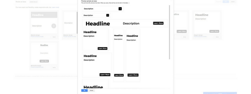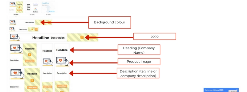 As explained earlier to update and image select the ad group you wish to edit and go into image Ad. However this time you will select Create an Ad. This will bring up a selection of basic layouts for you and will allow you go through each layout and see all the options and sizes that will show. Once you pick a layout you like select edit to open the Ad editor window.
